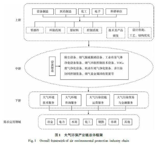 一文了解大氣環(huán)保產(chǎn)業(yè)鏈的結(jié)構(gòu)、特點(diǎn)、現(xiàn)狀及存在問題北極星大氣網(wǎng)訊:摘要:在大氣污染治理需求迫切,國(guó)家大力推動(dòng)大氣環(huán)保產(chǎn)業(yè)發(fā)展的背景下,基于對(duì)大氣環(huán)保產(chǎn)業(yè)鏈概念和內(nèi)涵界定的基礎(chǔ)上,從主導(dǎo)功能、產(chǎn)品類型、市場(chǎng)情況等方面分析了大氣環(huán)保產(chǎn)業(yè)鏈上、中、下游不同環(huán)節(jié)的特點(diǎn)及發(fā)展現(xiàn)狀。大氣環(huán)保產(chǎn)業(yè)鏈的上游是供應(yīng)鏈,主要為中、下游企業(yè)提供原材料、零部件、技術(shù)及產(chǎn)品的研發(fā)等;中游是生產(chǎn)鏈,主要包括除塵、脫硫、脫硝、VOCs治理等設(shè)備的生產(chǎn);下游是服務(wù)鏈,主要包括大氣環(huán)境技術(shù)、大氣環(huán)境咨詢、大氣污染設(shè)施運(yùn)營(yíng)、大氣環(huán)境貿(mào)易與金融服務(wù)業(yè)4類。在分析大氣環(huán)保產(chǎn)業(yè)鏈各環(huán)節(jié)發(fā)展存在問題的基礎(chǔ)上,從加強(qiáng)技術(shù)創(chuàng)新驅(qū)動(dòng),提升大氣環(huán)境服務(wù)業(yè)的綜合服務(wù)能力,健全政策、法規(guī)體系等方面提出了優(yōu)化產(chǎn)業(yè)鏈的建議。 大氣環(huán)保產(chǎn)業(yè)作為經(jīng)濟(jì)合作與發(fā)展組織(OECD) 對(duì)環(huán)保產(chǎn)業(yè)按要素分類的一個(gè)重要領(lǐng)域,近年來(lái)在推進(jìn)我國(guó)大氣污染防治工作,改善大氣環(huán)境質(zhì)量,促進(jìn)經(jīng)濟(jì)社會(huì)可持續(xù)發(fā)展方面起到了積極的作用。國(guó)務(wù)院發(fā)布的《關(guān)于印發(fā)大氣污染防治行動(dòng)計(jì)劃的通知》( 國(guó)發(fā)〔2013〕37號(hào)) 明確指出,要形成政府統(tǒng)領(lǐng)、企業(yè)施治、公眾參與的大氣污染防治機(jī)制,在國(guó)家宏觀政策的鼓勵(lì)和引導(dǎo)下,大氣環(huán)保產(chǎn)業(yè)迎來(lái)了快速發(fā)展的新契機(jī)。但就大氣環(huán)保產(chǎn)業(yè)的發(fā)展來(lái)看,還存在技術(shù)創(chuàng)新不足、研發(fā)投入不足、產(chǎn)業(yè)鏈條不完善等問題。國(guó)內(nèi)外專門針對(duì)大氣環(huán)保產(chǎn)業(yè)研究的學(xué)者還不多,相關(guān)研究多集中于大氣環(huán)保產(chǎn)業(yè)發(fā)展的制約因素、財(cái)政政策、發(fā)展現(xiàn)狀等方面,鮮有對(duì)大氣環(huán)保產(chǎn)業(yè)鏈結(jié)構(gòu)的分析以及產(chǎn)業(yè)鏈優(yōu)化等方面的研究。因此,筆者通過深入剖析大氣環(huán)保產(chǎn)業(yè)鏈的結(jié)構(gòu)現(xiàn)狀,包括上、中、下游各環(huán)節(jié)的組成、關(guān)系,識(shí)別產(chǎn)業(yè)鏈缺鏈、斷鏈的環(huán)節(jié),提出了完善我國(guó)大氣環(huán)保產(chǎn)業(yè)鏈的全產(chǎn)業(yè)鏈優(yōu)化對(duì)策,以期為深化大氣環(huán)保產(chǎn)業(yè)理論,促進(jìn)大氣環(huán)保產(chǎn)業(yè)的發(fā)展,優(yōu)化我國(guó)大氣環(huán)保產(chǎn)業(yè)鏈提供方法借鑒。 1 概念和內(nèi)涵 1.1 大氣環(huán)保產(chǎn)業(yè)鏈概念界定 1992 年OECD 將環(huán)保產(chǎn)業(yè)的概念界定為在終端控制、末端治理,具體是指在環(huán)境污染控制和減排、污染治理以及廢物利用等方面提供產(chǎn)品和服務(wù)的行業(yè),這是大多數(shù)歐洲國(guó)家采用的狹義的定義。廣義上,環(huán)保產(chǎn)業(yè)不僅包括狹義環(huán)保產(chǎn)業(yè)的定義,還包括清潔技術(shù)、清潔產(chǎn)品和生態(tài)環(huán)境建設(shè)等內(nèi)容。我國(guó)學(xué)者對(duì)環(huán)保產(chǎn)業(yè)的界定主要基于廣義的定義,認(rèn)為環(huán)保產(chǎn)業(yè)是以防止環(huán)境污染、改善生態(tài)環(huán)境等為目的技術(shù)開發(fā)、產(chǎn)品生產(chǎn)、資源利用、信息服務(wù)、工程承包等活動(dòng)的總稱。基于此,目前我國(guó)關(guān)于大氣污染治理產(chǎn)業(yè)的概念界定主要基于OECD的環(huán)保產(chǎn)業(yè)定義,側(cè)重于大氣污染的末端治理、終端控制。而大氣環(huán)保產(chǎn)業(yè),主要是基于廣義環(huán)保產(chǎn)業(yè)的定義,指為大氣污染控制和減排( 包括源頭預(yù)防、過程控制、末端治理等全過程) ,以大氣環(huán)境質(zhì)量改善為目的提供技術(shù)、產(chǎn)品、服務(wù)等的產(chǎn)業(yè)。 對(duì)大氣環(huán)保產(chǎn)業(yè)鏈的概念進(jìn)行界定,還需要對(duì)產(chǎn)業(yè)鏈有清晰的認(rèn)識(shí)。產(chǎn)業(yè)鏈一詞據(jù)考證最早是由我國(guó)學(xué)者提出的,但國(guó)內(nèi)學(xué)者對(duì)于產(chǎn)業(yè)鏈的概念尚未形成統(tǒng)一的認(rèn)識(shí),通過對(duì)比分析國(guó)內(nèi)學(xué)者給出的定義,劉貴富提出產(chǎn)業(yè)鏈的科學(xué)定義為同一產(chǎn)業(yè)或不同產(chǎn)業(yè)的企業(yè),以產(chǎn)品為對(duì)象,以投入產(chǎn)出為紐帶,以價(jià)值增值為導(dǎo)向,以滿足用戶需求為目標(biāo),依據(jù)特定的邏輯聯(lián)系和時(shí)空布局形成的上下關(guān)聯(lián)的、動(dòng)態(tài)的鏈?zhǔn)街虚g組織。 大氣環(huán)保產(chǎn)業(yè)從產(chǎn)業(yè)類型來(lái)看,主要包括設(shè)計(jì)咨詢( 生產(chǎn)工藝、結(jié)構(gòu)優(yōu)化咨詢) 、技術(shù)、清潔產(chǎn)品研發(fā)、原料生產(chǎn)供應(yīng)、大氣環(
